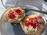 イギリスらしい巨大なスコーンではなく、小ぶりのかわいらしいスコーンが2つです。