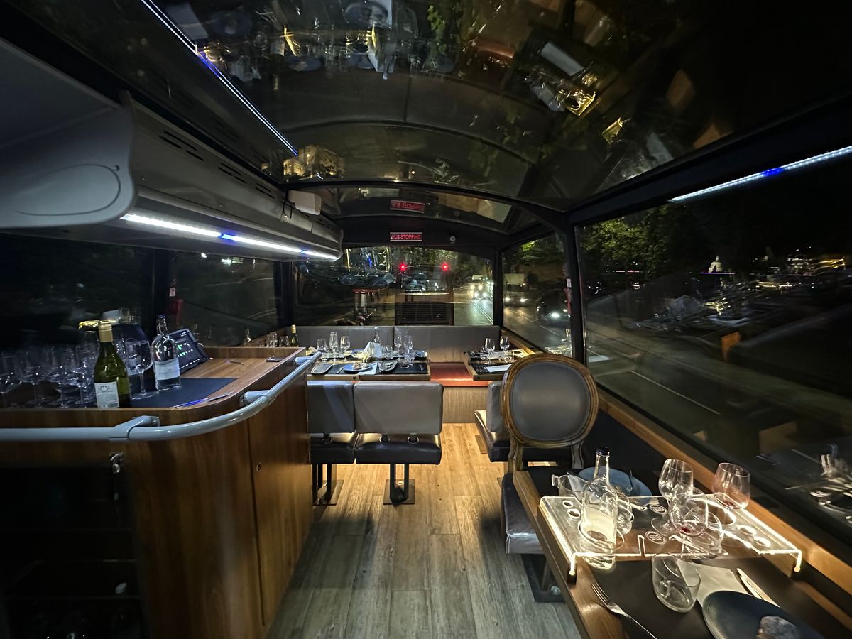 ランチで利用しました。雨だったのが少し残念でしたが、バスでコース料理を食べたことが無かったので新鮮な体験でした。お料理はどれも美味しかったです。かなり満腹になりますので朝食は少なめにしておいた方が良いかもしれません。