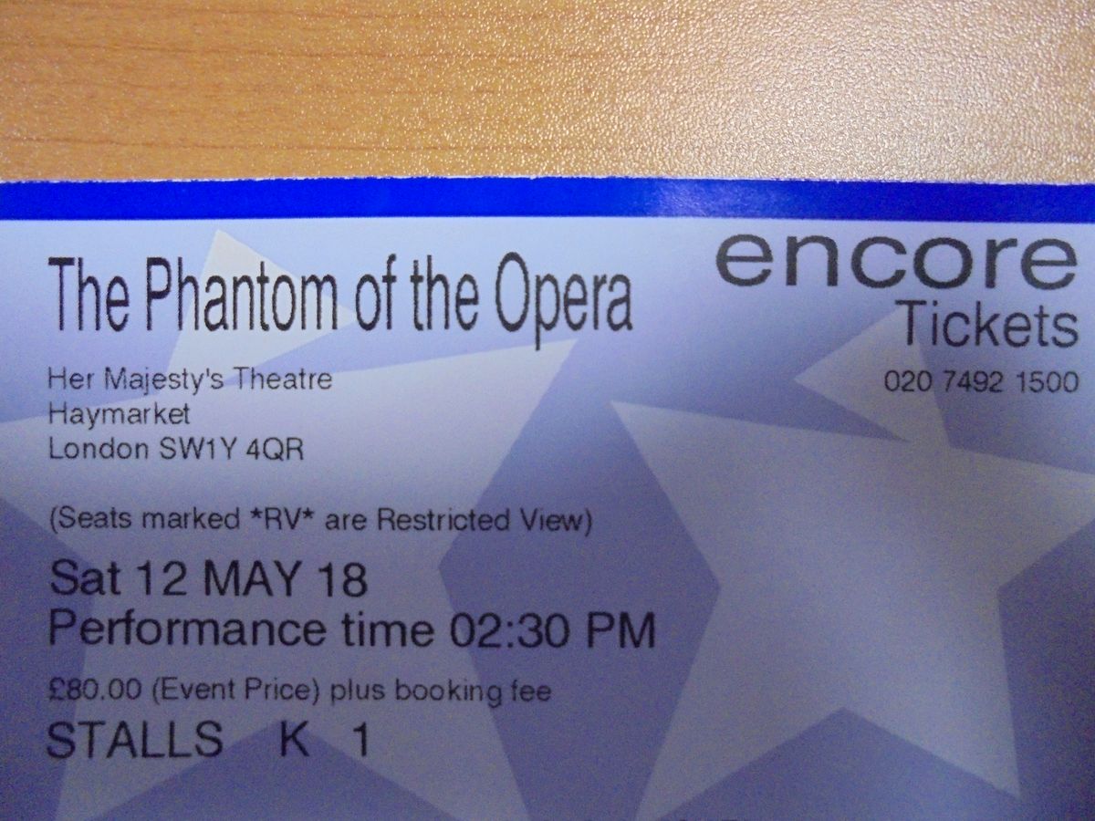 この為にわざわざロンドンに来たと行っても過言ではなく、日本でやっている劇団四季の「オペラ座の怪人」も映画の「オペラ座の怪人」も大好きで、本場で観たいという思いでやって来ました。