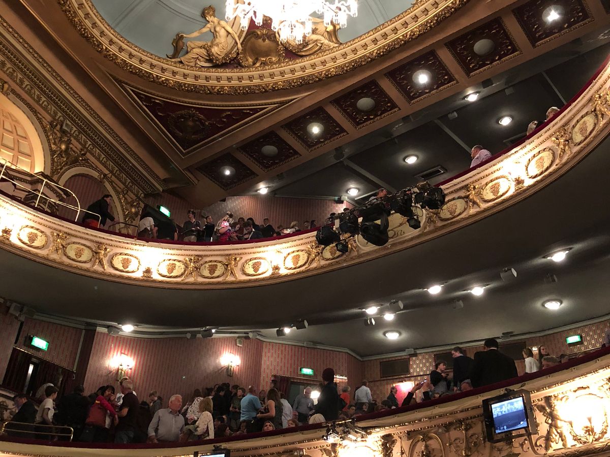 劇場が古く、それも見応えがあり、何より客席でお酒片手に観劇スタイル!幕間にはアイスクリーム販売が有ったり客席案内係がパンフレットなどを手売り販売で客席を回ったりとこれも日本じゃ味わえないものでした。