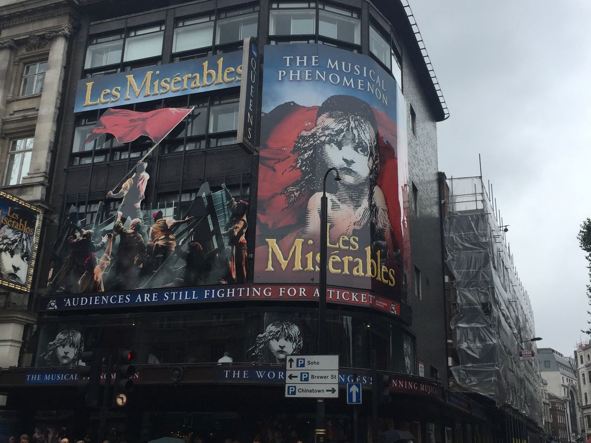 ミュージカルの内容自体は、言わずもがなです。日本でも御馴染みで内容(歌、演奏、照明、演出等)は素晴らしいです。が、席が1階の後ろから2番目で、席に座るとステージの上半分が見えず、劇中に登場するバリケードの上の方が死角となりました。さらに、前の席に座高の高い人が座り、ステージの真ん中が見ないという最悪のケースとなりました。