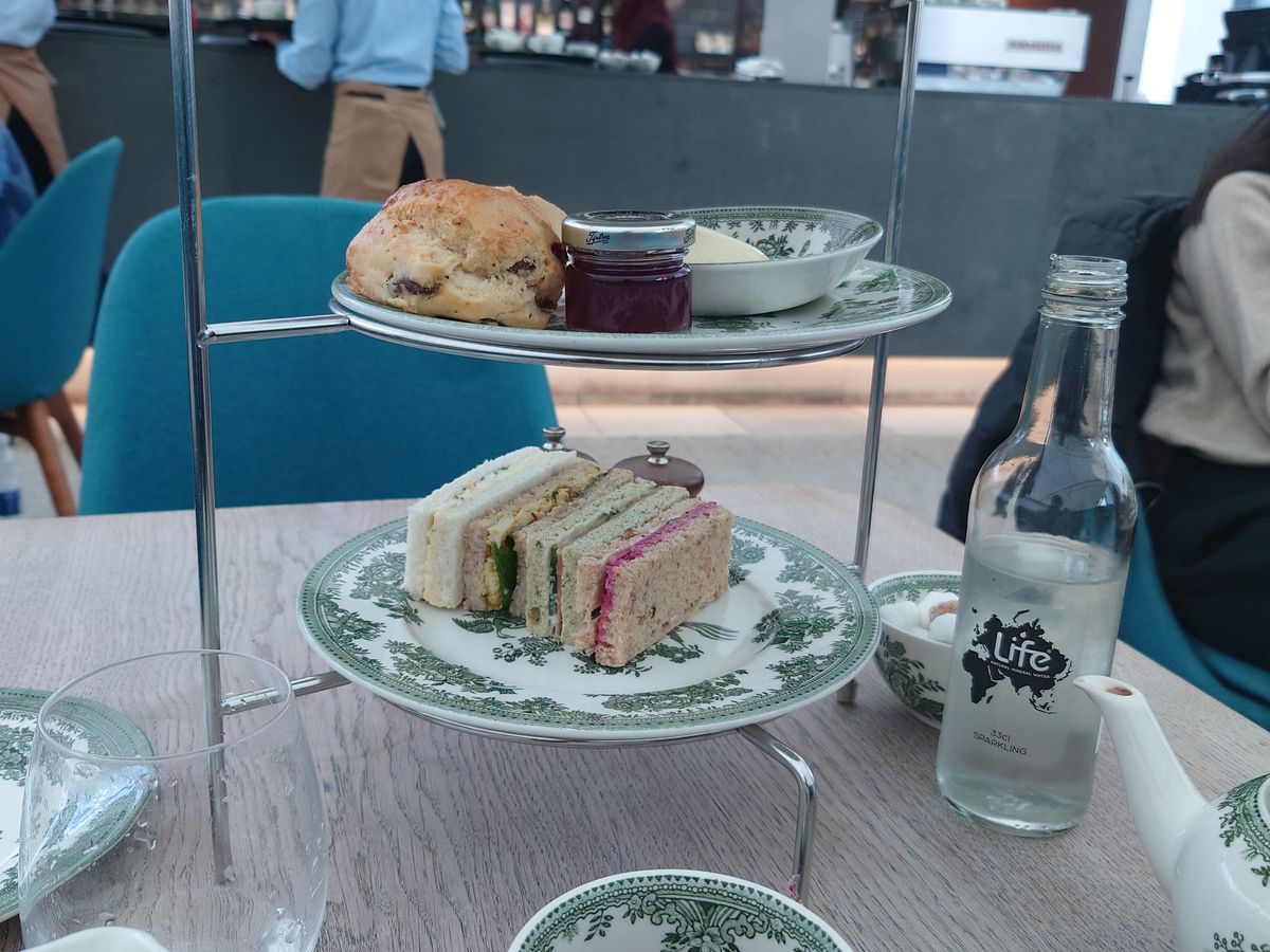 滞在スケジュールがタイトだったため大英博物館見学後に移動の必要が無い場所でのアフタヌーンティーを選択。サンドイッチはパサついていたものの味はまあまあ、スコーンは冷たかったです。上段のケーキ類は食べ切れずに箱に入れてもらいテイクアウトをしましたが、ケーキと箱とのサイズが合っていないため、ホテルに帰るまでにケーキは倒れていました。接客は丁寧でしたしドレスコードもないので値段的にもこんなものかと納得しています。