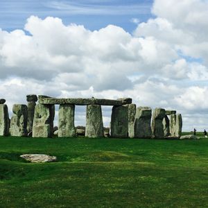 ストーンヘンジは、シャトルバスに乗り換えて遺跡の近くまで行きます。不思議な形の石の神殿の回りを歩いて一周することができます。
