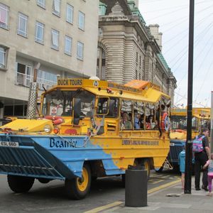 水陸両用の船を初めてみました。観光客もあまり見たことがなく