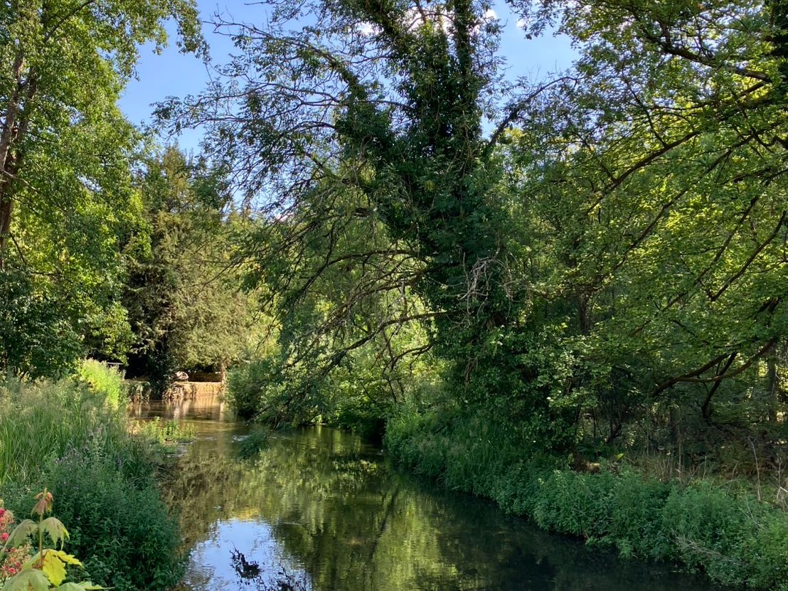 バイブリーを流れるコルン川は、ミレーの絵画「オフィーリア」の背景を思わせます。少し離れた小さな教会には遅咲きのバラが残り、その静寂が強く印象に残りました。