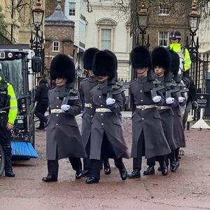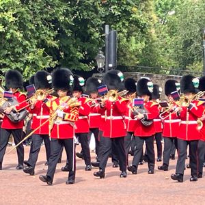 1703年に建築されたバッキンガムハウスを1837年よりヴィクトリア女王が移り住んだことからバッキンガム宮殿は王室の公式宮殿となりました。衛兵交代式は、グレナディア隊、コールドストリーム隊、スコッツガーズ隊、アイリッシュガーズ隊、ウェルッシュガーズ隊という5つの近衛歩兵隊連隊による勤務交代の儀式です。これらの連隊は通常バッキンガム宮殿だけでなく、セントジェームズ宮殿やクラレンスハウスの護衛をしています。また騎馬隊にも2つの連隊があります。女王(王)の誕生日などは最も派手なトルーピング・ザ・カラーという交代式が行われます。