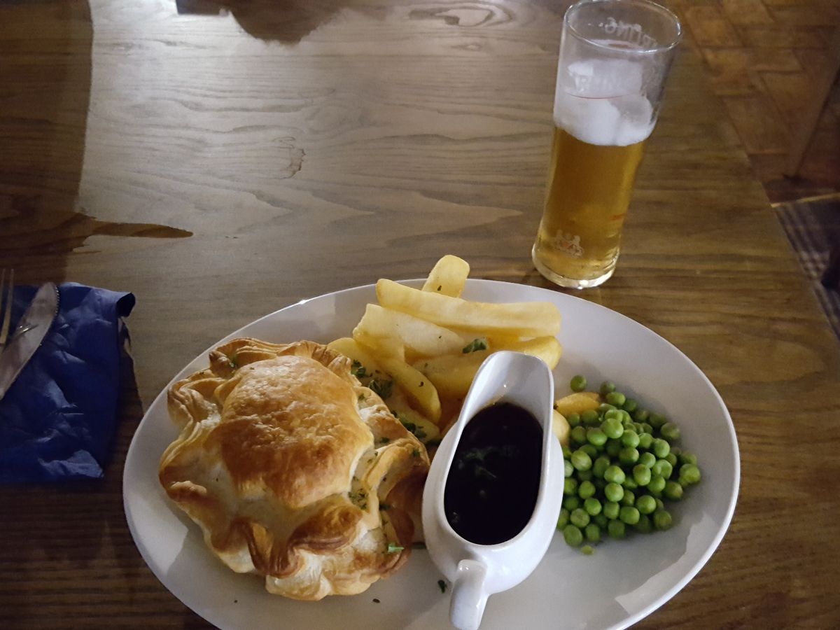 ランチで食べた七面鳥のパイとラガービールはとても満足させてくれました。