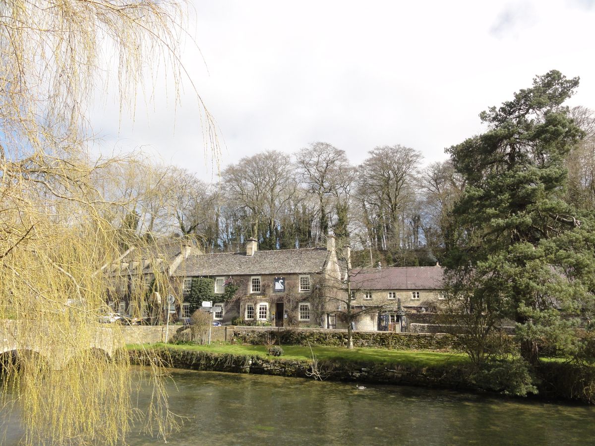ホテルのすぐ前を小川が流れています。ホテルを出て右、アッパー・スローター方向に進み、ミル(昔の水車による粉ひき小屋。今は小さな博物館)の前をさらに右側に行くと直ぐ、左奥に遊歩道があります(その入口は木の柵になっているため、当初は「行き止まり」と勘違いしました)。そこは、かつて故ダイアナ妃が皇太子と散策した場所らしく、入口柵の裏側に記念のプレートが貼ってありました。