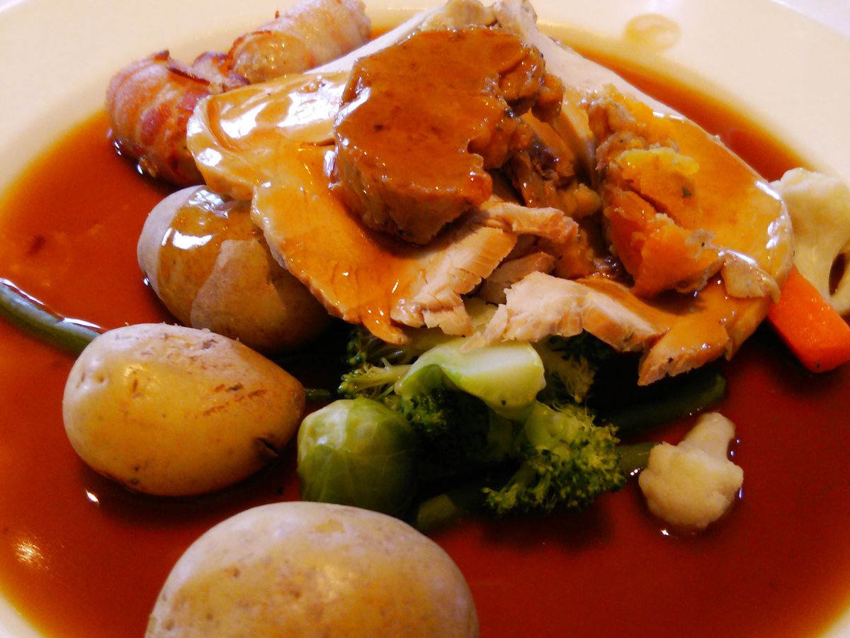 ランチに寄ったSWAN HOTELは建物もお庭もキレイで雰囲気ありましたが、クリスマスシーズンだったので、マス(魚)ではなく、ターキーが出てきました。 肉はまずまずでしたが、クリスマス特製ライスプディングに私は辟易。困っていたら隣の男性がトントンとテーブルをたたいてくれて、目配せで(みんな残してるから大丈夫だよ)と教えてくださいました。