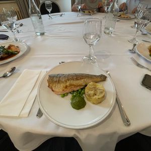 食事は、バスの中でミートorフィッシュ?と聞かれるので、考えておいてくださいね。私は、トラウトサーモンが有名とどこかで聞き、フィッシュを選択。骨が沢山ありましたが、ふわふわで、ソースも美味しかったです。ミートの方は、チキンにソースがかかっているやうな感じでした。ちょっとしょっぱいと言っている人がいました。