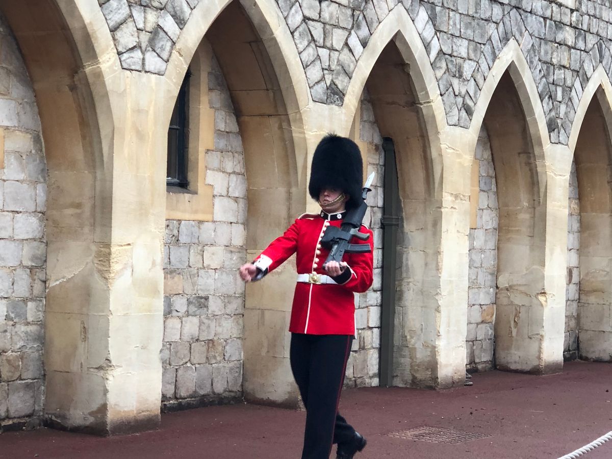 その日は天気にも恵まれず、ウィンザー城はかなり強い雨の中、ずいぶん長い列を待つことになりました。天気については誰の責任でもないので仕方ありませんね。ロンドンの天気は朝どんなに晴れていても途中で雨に変わることはめずらしくないので、必ず濡れてもいい準備をしていきましょう。10時半あたりから衛兵交代があるため、一時的に通行が遮断されます。集合時間がある人はその確認をしておいた方がいいと思います。また、このコースはかなり欲張っていますので、もう少しゆっくり見たい人にはお薦めしません。2か所にしておいた方が無難です。