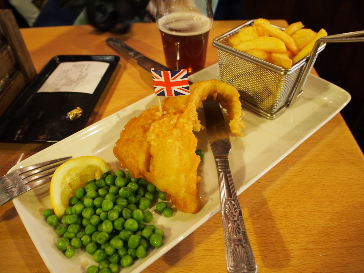 3か所目は大学の町オックスフォードです。予定より到着時間が遅れ、お土産店の閉店時の関係で大学等の街並み徒歩ツアーを後回しにしたため、30分の自由時間がありました。この時間を利用し、ガイドさんの紹介の町一番のパブでビールと本場のフィシュ&チップス味わうことができました。