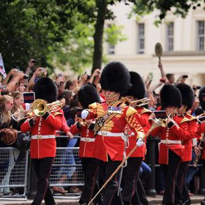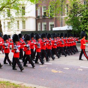 この日はエリザベス女王が不在のため衛兵の交替式は無かったようですが、女王の公式誕生日祝賀パレードの練習を見ることが出来ました。
