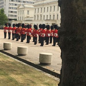 ②そして結果、衛兵交代式に遅れました。最初のロンドン塔の散策時間などで調整すれば良かったのに…。ガイドさんも「みなさん衛兵交代式が一番見たいですよね?開始までに間に合うように頑張りましょう」って出発時は言っていたのに。渋滞にうんざりした運転手に途中でバスから降ろされもしました。歩いて近くに行くともう鼓笛隊の音は遠くなっており、交代式は始まっていました。走っていい場所を探しに行き、いい場所を見つけてたまたま最後まで見ることはできました。終わる時間は最初の時間と同じ分だけ遅れて終了しました。