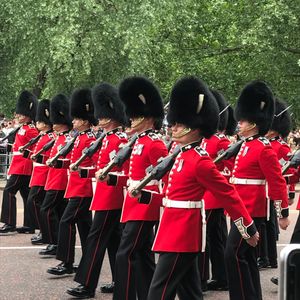 移動してバッキンガム宮殿で衛兵の行進見学。ガイドさんが見れる場所まで案内していただきました。見れて良かったです。