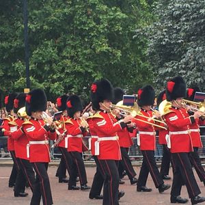 市内半日観光ツアー、なんといってもバッキンガム宮殿の衛兵交代式、衛兵さんの行進を最前列で見ることができました!