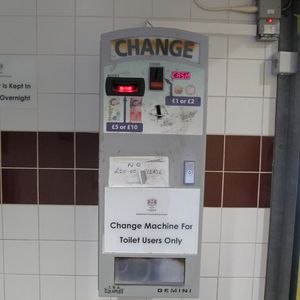 ロンドン塔駐車場の有料トイレの両替機は旧式で、5/21現在、旧札を使えました。いつ使えなくなるか分かりませんが、ご参考まで。