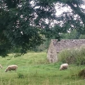 あちこちに羊を見る大自然と、湖がある静かな風景。