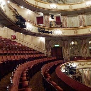 友人夫婦と4人の利用です。クーポンには19:15劇場に集合とありましたので、当日早めに劇場に着いて、どこが集合場所かと一瞬迷いましたが、劇場窓口へクーポンを差し出したら、すぐ4人の座席指定のチケットを貰えました。席はD11,12,13,14で平土間の前から2列目の中央でした。ちょっと前過ぎて音響が大きく最初は閉口しましたがすぐ慣れました、その代わり俳優の表情などもよく見えて踊りも迫力が感じられ、まずまず満足な席でした。劇場はやや小振りで1100席、ロココ?風の装飾は一流劇場なみの豪華さ。梗概と歌曲はあらかじめ調べていきましたが、台詞や歌詞の日本語訳は著作権の関係とかで入手できず、ちょっと残念でしたが、歌も踊りもさすが本場という感じで、充分に楽しめました。アンコールの踊りの時は、観客みな手拍子で中には踊る人もいて最高の盛り上がりでした。中間休憩15分をはさみ、19:45から22:10まで。かえりのタクシーも難なく拾えました。イギリス旅行2週間の最終夜、とてもいい想い出になりました。