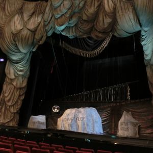 小さな劇場でしたが古くて重厚な内装で始まるまで天井や周囲を眺めていましたが、舞台中央上の大きなエンジェルの彫刻?も劇場の装飾だとばかり思っていたのが、あとで大道具の一つと分かりビックリ!他にも地下に下りて行く階段や、地下を流れる川の表現、中でも舞台から客席中央の天井まで吊り上げられる大きなシャンデリアの仕掛けに感心しました。