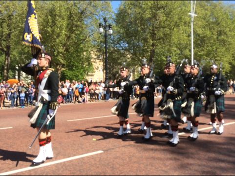 日曜だったので、市内は渋滞もなく移動できました。その代わりバッキンガム宮殿での衛兵交代式はすごい人で、ガイドさんの連れて行っていただいた場所で間近で見ることができ、動画も撮れてとてもよかったです。個人で行くと、きっと見ることができなかったでしょう。州によって違う制服があって、普通の赤に黒のものと、スコットランドのタータンチェックのものを見ることができてラッキーでした。