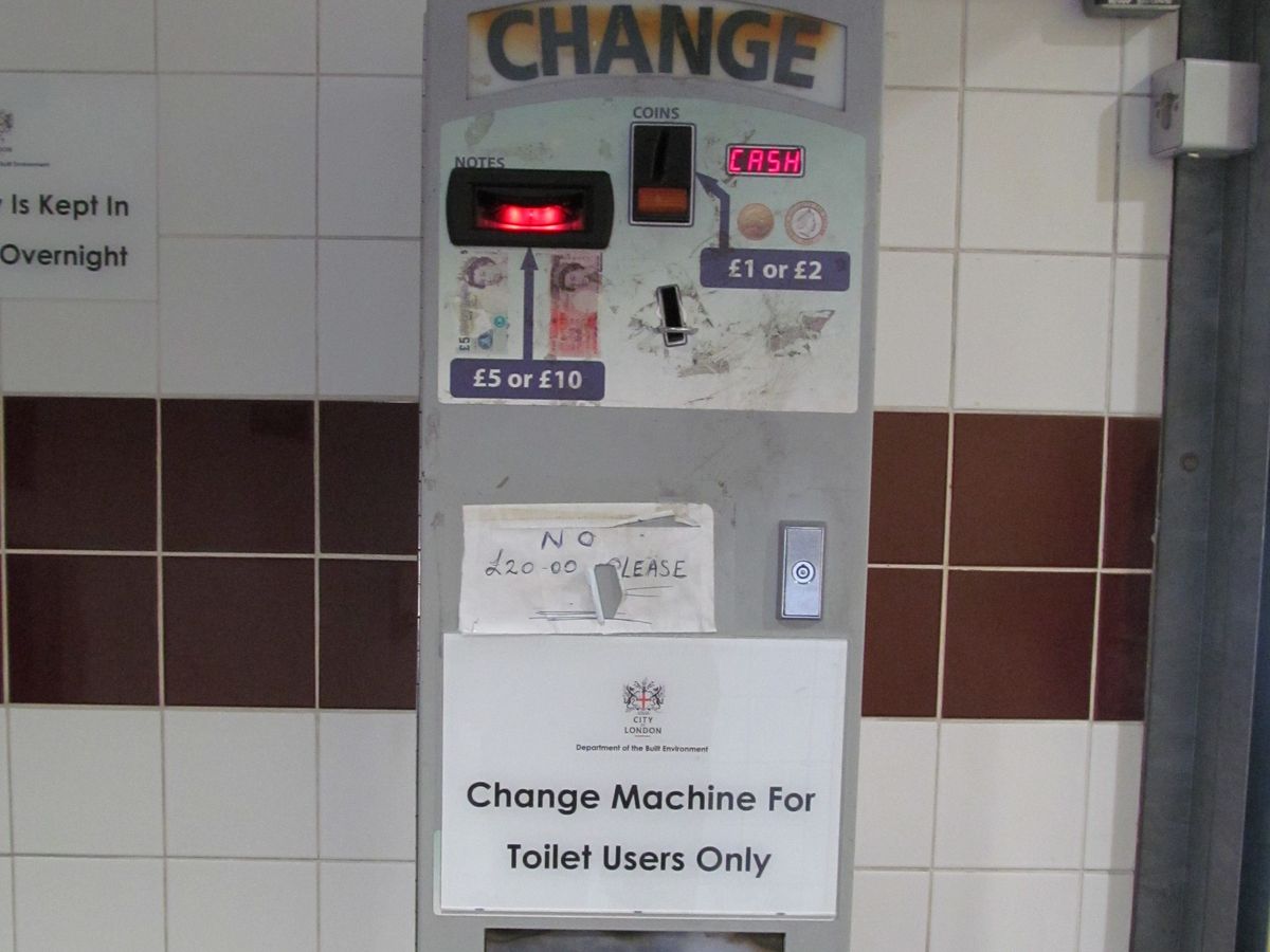 ロンドン塔駐車場の有料トイレの両替機は旧式で、5/21現在、旧札を使えました。いつ使えなくなるか分かりませんが、ご参考まで。