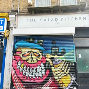 バンクシーだけではなく他のストリートアーティストたちの背景などと教えていただきました。普段立ち入らないイーストロンドンエリアはストリートアートで溢れていました。ベーグルを買ったり、屋台で交渉してもらったり楽しませていただきました