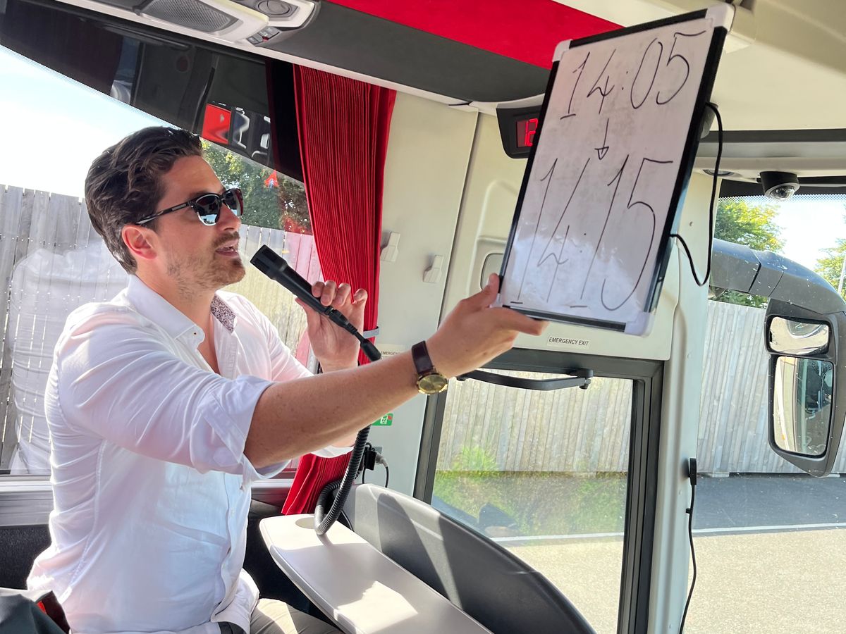集合場所もわかりやすく、待っているとバスから添乗員クリスティーヌさんが降りてきて声をかけてくれました