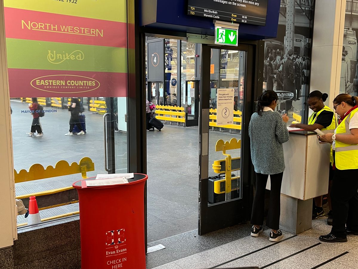 ビクトリア駅の近くにビクトリアコーチ駅というバス用の駅があり、そこが集合場所でした。ベルトラの説明にはデスクがあるということでしたが、デスクに人が常駐しているわけではなく、バス停の出発口周辺にいる係員に会いチェックインしました。ストーンヘンジとウインザー城のツアーは人気でチェックインのために列ができていました。バスも満席でした。隣同士で座りたいのであれば早めにチェックインして出発口に並んでおくと良いと思います。
