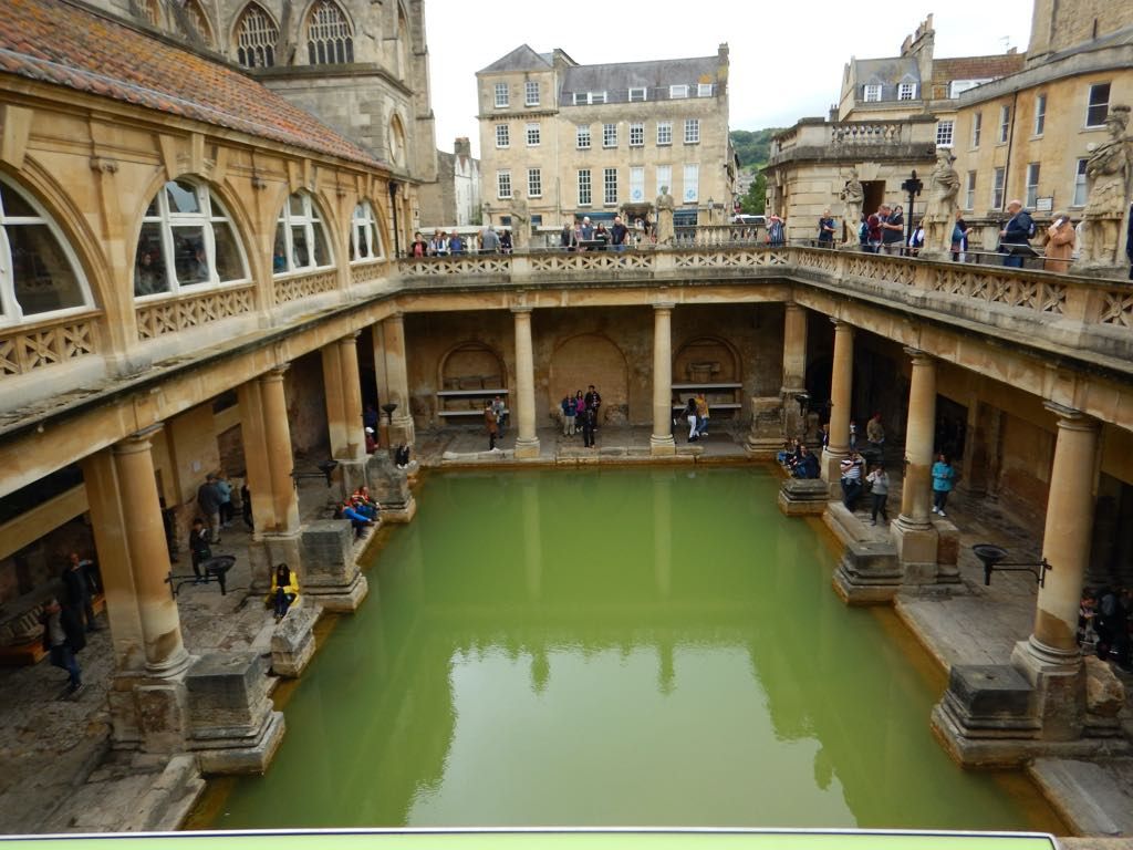 九月のイギリスは雨が多い時期でロンドン出発時、空は厚い雲に覆われ、バス移動中にポツリポツリと降りだしてしまいました。途中お風呂の語源となったバースの古代ローマ人公衆浴場遺跡やハリーポッターのロケ地ともなったコッツウォルズに立ち寄る頃には雲が切れ、雨の心配は無くなりラッキーでした。