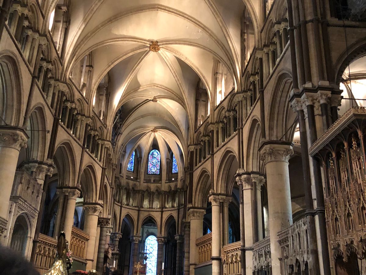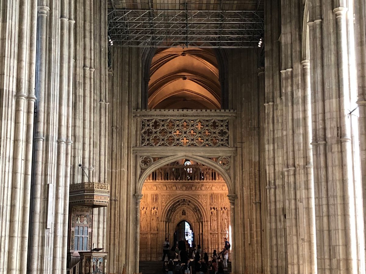 カンタベリー大聖堂が修復中で、ステンドグラスが外されていて残念でした。