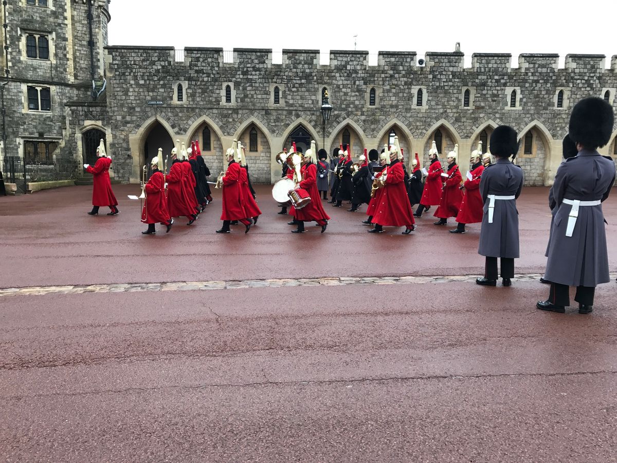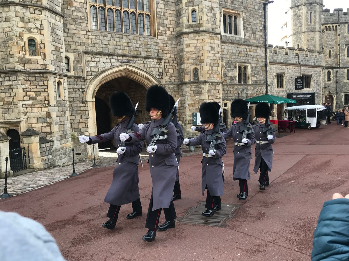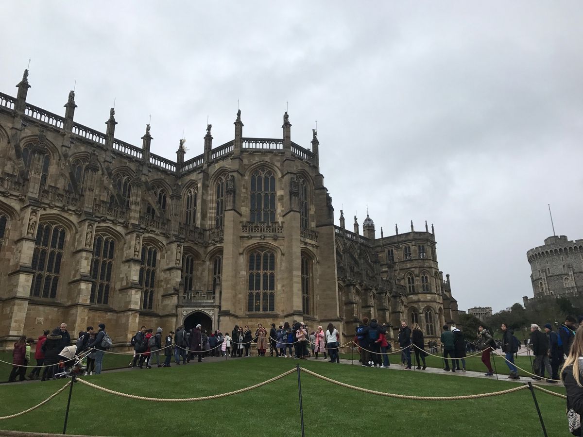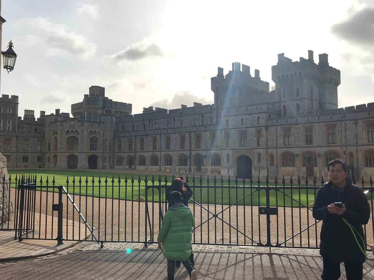 集合場所がパディントンの2番線でした。ゴールデンツアーズ係員外人のお兄さんが私の名前を掲げて待っていました。集合時間は朝8時50分でしたが、10分前に着いたため、係員のお兄さんからチケットをもらったあと直ぐに列車のホームに向かいました。お兄さんの言葉が非常に早口で聞き取りづらいので、スマートフォンにイギリスの駅を検索できるアプリを予め入れておいて検索して調べてから列車に乗りました(^^;)列車は「GWR」のマークが車体にプリントされたGreat Western Railway列車のオックスフォード行き1番線でした。乗車チケットは往復含めたチケットなので無くさないように持って、スタンダード(普通車両)に乗り込みます。先頭車両はファーストクラス車両なので列車の真ん中あたりに乗って適当に座りました。予約席にはReservedというのがあるようでしたが、それがない席に座ります。乗換え駅はSlough(スラウ)駅です。スラウ駅で車両の短いWindsor & Eton Central駅行き列車に乗換えました。車内には座席の足元にちょうどUSBポートがあり、短い時間ですがスマホの充電も可能でした。1駅で着いたのでパディントン駅から併せて30分ほどでした。Windsor & Eton Central駅からウィンザー城までは徒歩4~5分という感じです。あまりにも早く着き過ぎたので、10時過ぎまでウィンザー城の入口付近で30分ほど並びました。並んでいる間も次々に観光客が列に並びどんどん列が長くなりました。団体用の入り口は別の入り口から入場になるようでした。9時半頃には並び始めた甲斐あってウィンザー城はほとんど人がいない中でゆっくり見てまわることができました。土産屋もほぼ一番乗りで買い物もできた上、お店の中や聖ジョージ教会は暖房が効いていました。朝11時頃の衛兵交代式も先頭でガッツリ見れましたが、30分見続けるにはとても寒すぎてビデオカメラで録画し続けることができませんでした。冬場の雨や雪が降る悪天候でしたが、ウィンザー城もロング・ウォークと呼ばれる並木道の散策もできて、個人的には天候と気温以外は何も言うことはありません。