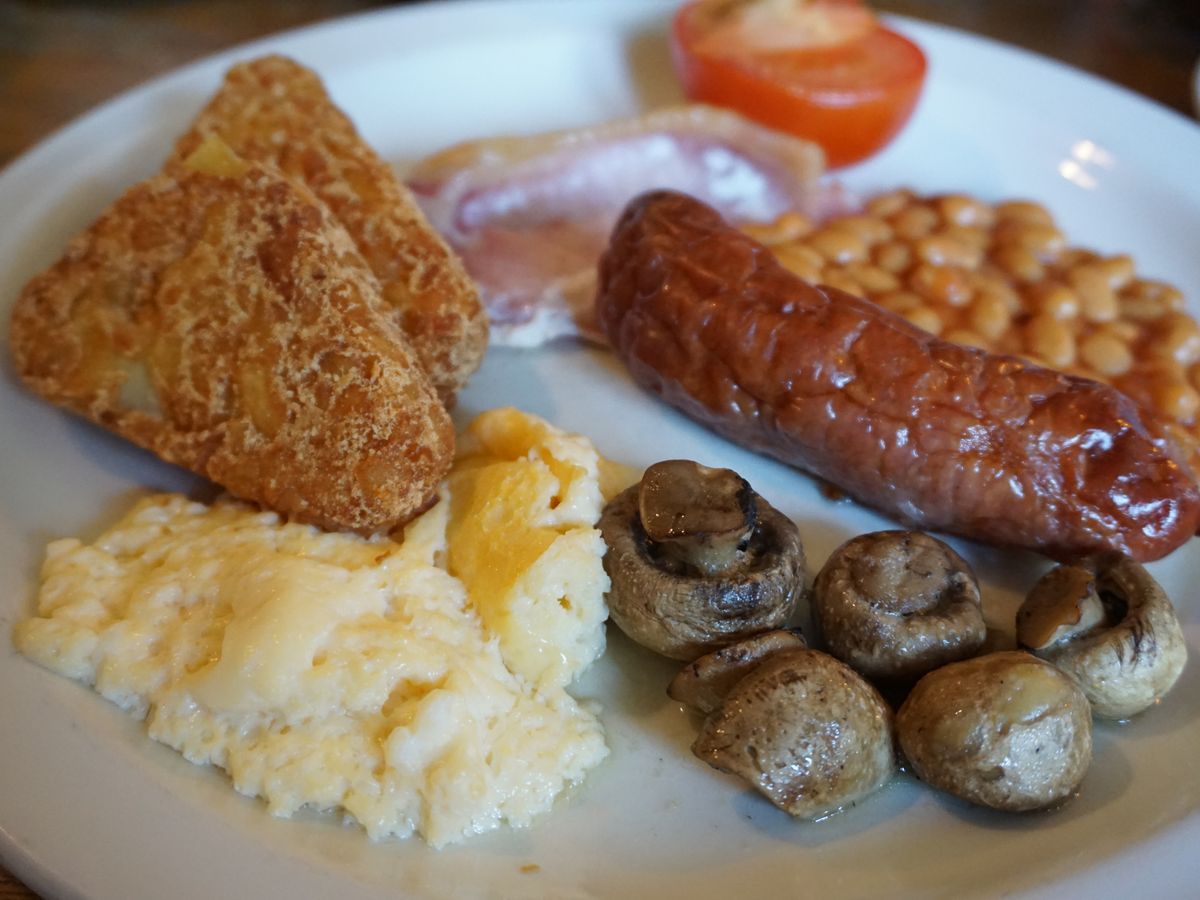 最初にランチタイムがありました。ガイドに斡旋されたのは12.5£で、メイン+デザート(コーヒー紅茶付き)。メインを①フィッシュ&チップス②チキン&チップス③ビーフパイ④ベジタリアン用のベイクドポテトの中から選択できます。