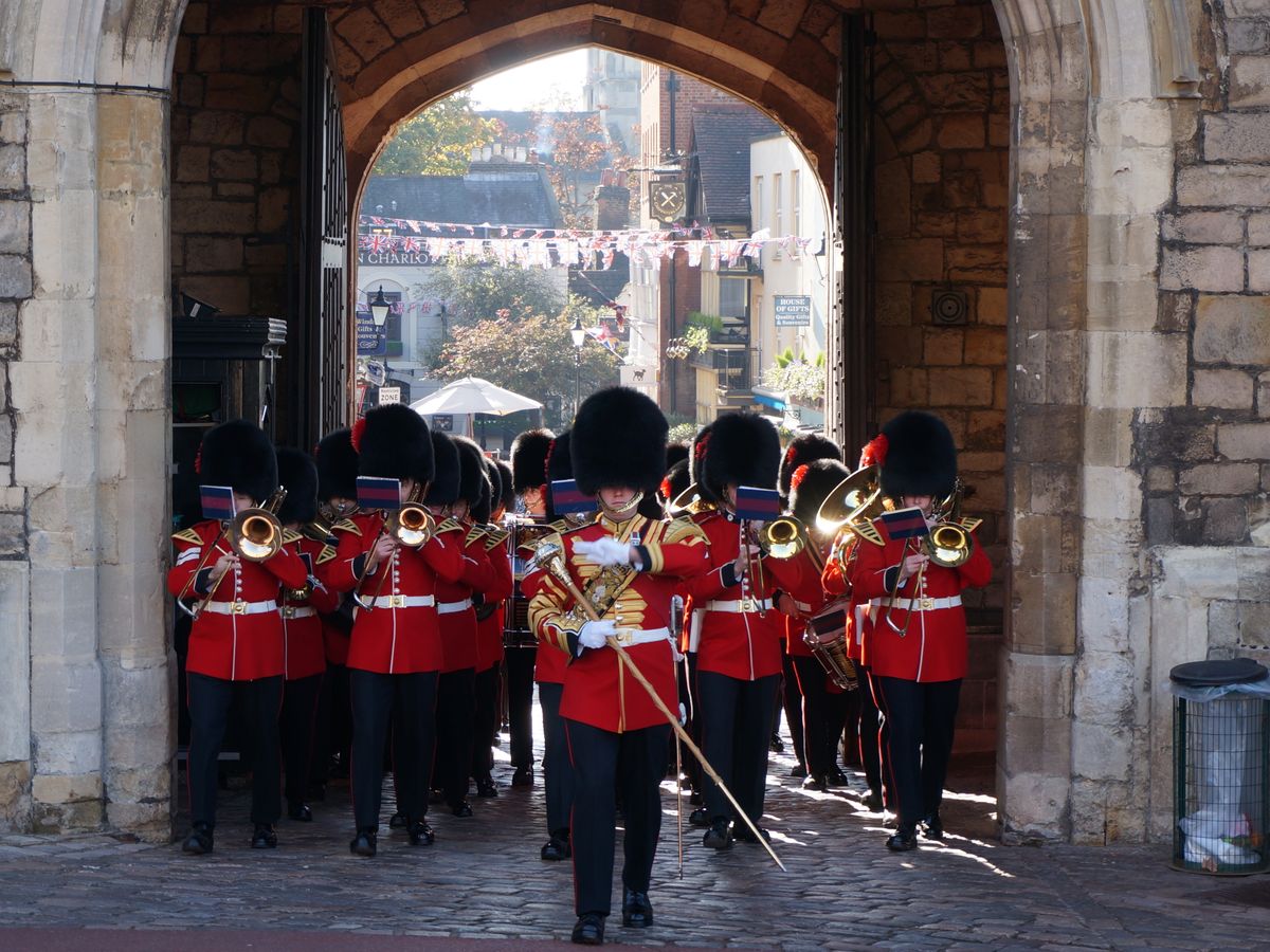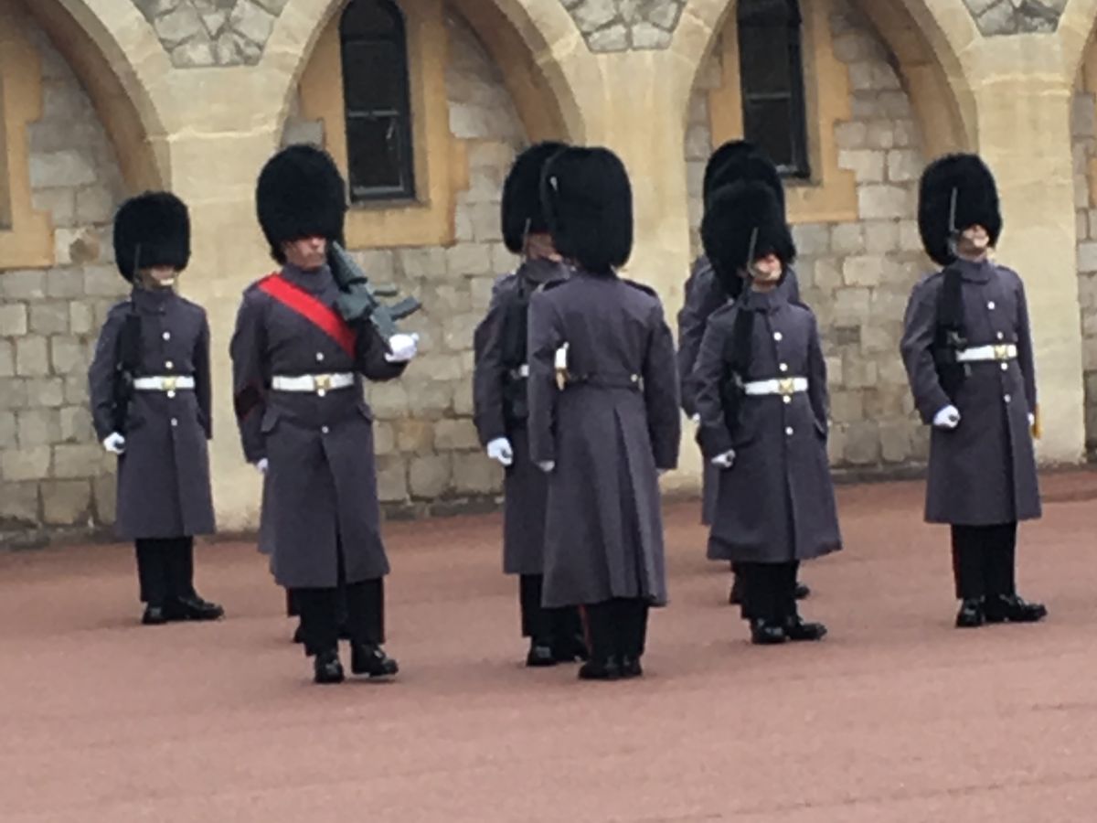 まずはウインザー城見学、入場時間前に到着したため鳴海さんお勧めの撮影ポイントに案内され国王の入場門で撮影タイム。その後、城内見学1時間程度。