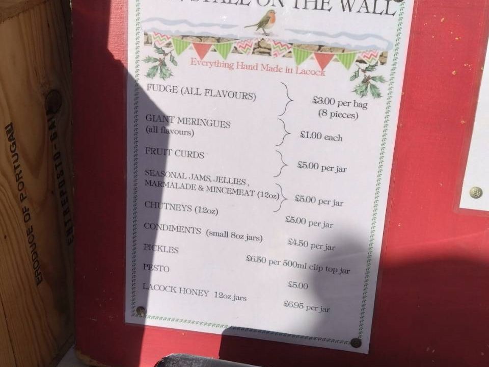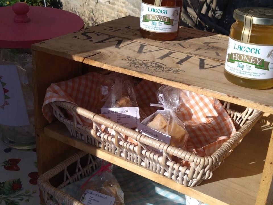 次のLACOCKでは、パーキングから食事場所George Innに歩く途中、遠くにLacock Abbeyが見えました。本当はハリーポッター撮影地であるAbbeyに行きたかったのですが、時間がなくてあきらめました。食事をしなければ行けたかもしれません。食事はツアー割引で、少し安く食べることができました。(私はフィッシュ&チップス13ポンドをオーダーしました。)急いで食べ終えて、支払いをして外に出て、ハリーの両親のアパートとSlughorn's House の写真を撮りに行きました。そこからパーキングへ戻る途中に、無人のお土産販売があって、トフィー、レモンカード、ハニーを買いました。ロンドンより安かったし美味しかったです。