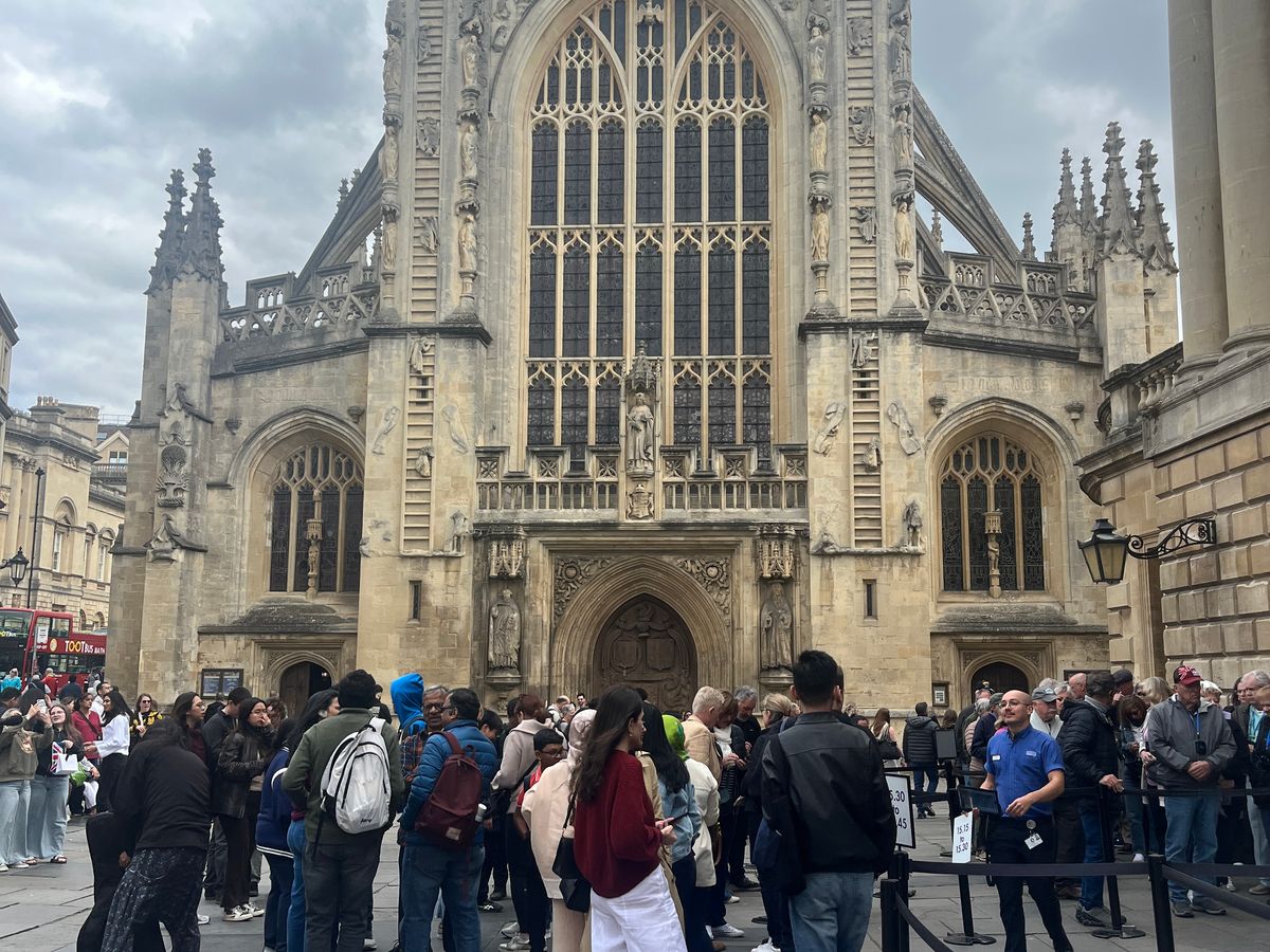 ミレニアムグロスターホテルに集合時間より少し前に到着すると、何名か既に並んで待っていました。出発前にホテルロビーのトイレを使うことが出来ました。バスが到着すると先着で乗って、自由席だったので、参加人数が多いグループが隣に座りたい場合は早く到着する必要があります。ツアーガイドが遅刻して出発が遅くなりました。日曜でしたが道路の渋滞はあまりなかったです。BATHで時間を節約したかったのでRoman Bathの入場券をあらかじめ申し込んでおきましたが、それが失敗でした。ツアーガイドがチケットを受け取って配布するまで長時間待たされて、BATHでの自由時間が1時間45分しか無かったです。急いでRoman Bathを走って見学して、パルトニー橋(映画レ・ミゼラブル撮影地)とドラマ Bridgertonの撮影地 Abby's Deli とNo.1 Royal Crescentに写真を撮りに走って、Sally Lunn's の地下ショップでバンズほかお土産を買って、汗だくで歩いていたら、ツアーガイドに遭遇。たまたま集合場所に到着できました。集合場所がわかりにくく、迷っていた他の参加者も居たみたいです。