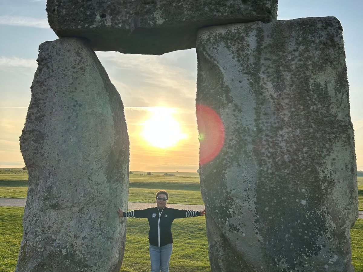 さて、メインイベントのストーンヘンジに日没の時間に合わせて到着。一般客の見学時間が終わった後だったのか、人が少なくトイレもすぐに使えました。バスを降りて、ストーンヘンジに向かう専用バスに乗り換えました。専用ガイドも同行してくれました。終日とても天気が良い日で、日没前にサークル内に入って見学。石に触ってはいけないルールですが、とても近くで見ることができます。とても不思議な体験でした。靴を脱いで裸足になって、写真を撮影しました。日没の瞬間には少し離れた位置でサークルの向こうに夕日が見えるように撮影できました。BATHとLACOCKはもう少しゆっくり見たかったという後悔が残りますが、ストーンヘンジは余裕をもって見学できてよかったです。自力では1日で周遊できなかったので、ツアーに参加して良かったです。サークルに入らないツアーと迷ったのですが、入るツアーを選んで正解でした。