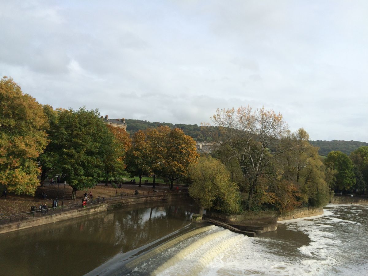 最後はバースの街。ローマ浴場に行きましたが実際に入浴はできません。遺構がそのまま保存されていたり、風呂を作るために使われた技術が解説されていたり、という場所で、漫画「テルマエロマエ」のルシウスになった気分で見れて面白かったです。ローマ浴場を見学し終えてからバスの出発まで30~40分時間がありました。私達は近くの河畔の公園でゆっくりしました。暗くなりかかっていたのに更に光の少ない方向に向かうのは少々不安でしたが、とても穏やかで平和そうな街でしたし、公園には他の観光客が数組と子供連れの家族もいたので大丈夫だろうと判断しました。公園では温泉の源泉を見つけたと言われている羊飼いの石像や、石造りの橋を見たりしてのんびり過ごしました。