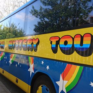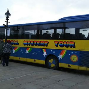 周りをきょろきょろと見回して、Magical Mystery Tourと車体に描いてあるバスを探しましょう。