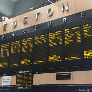 発車15分前にならないとホームが決まらないので、緊張して電光掲示版を見入りました。ユーストン駅からリバプール駅まで2時間半程度、新幹線で東京から名古屋の感じ、列車は特急電車の大きさで似たような雰囲気、ただし席は回転できず、後ろ向きのまま。駅のフードスタンドで朝食を購入、