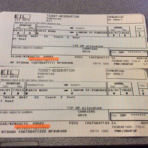 St.Pancrasで封筒を受け取ってESへ。北駅に迎えの方がいてくださってHOP ON-HOP OFFのチケットを受け取り、オペラ座までバスで。帰りは同じ場所から、再び北駅のESのゲートまで案内してくださるので、治安が心配な北駅を一人で歩かなくていいので、女性の一人旅でも安心でした。朝の待ち合わせ時間の変更があるので必ずリコーフェアメーションを。HOP ON-HOP OFFのVOUCHERが手違いで入ってなかったので、封筒を受け取ったら中身を必ず確認した方がいいです。パリのガイドの方がロンドンに電話して問題なく乗れましたが少しあせりました。帰りオペラ座の前から北駅までのバスが少しわかりづらかったので、ガイドの方の電話番号を聞いておくと安心かもしれません。