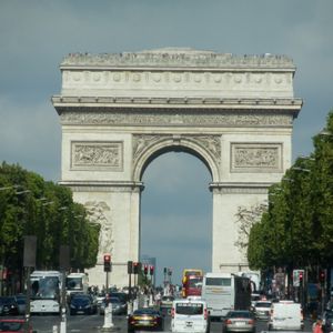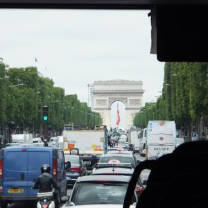 シャンゼリゼ通りを走るバスから見た凱旋門はとても優雅でした。