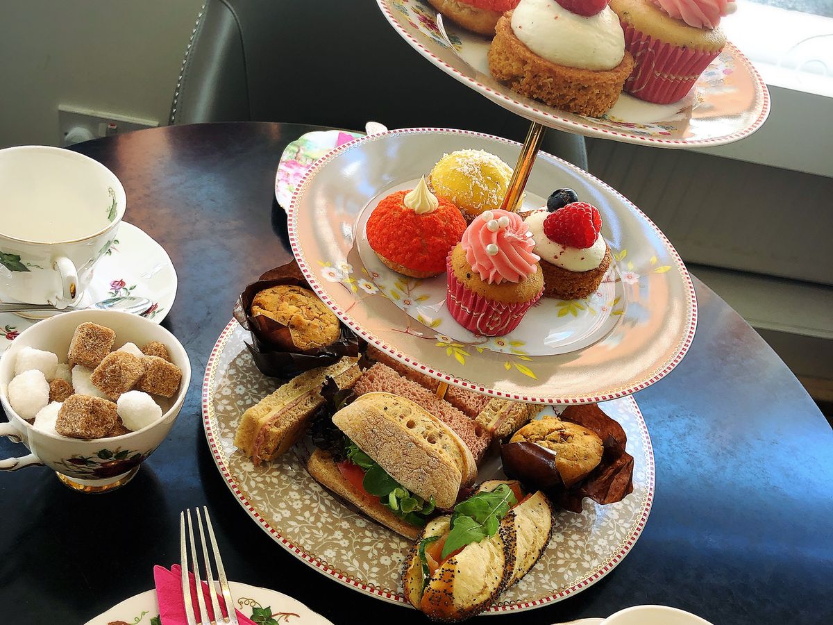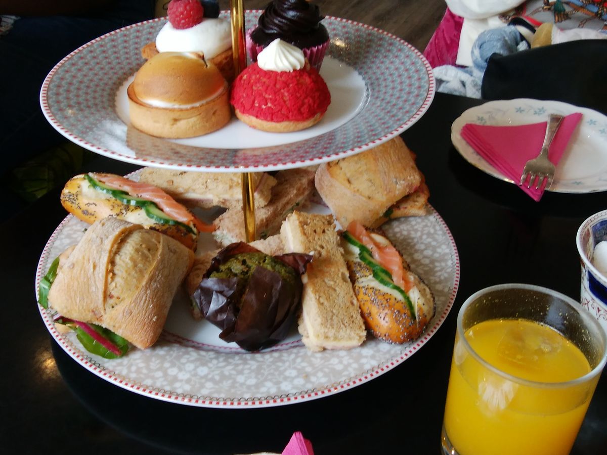 食べ物は食事系マフィンとサンドイッチ4種類、タルト系のケーキが4個、後からスコーンも出してくれました。