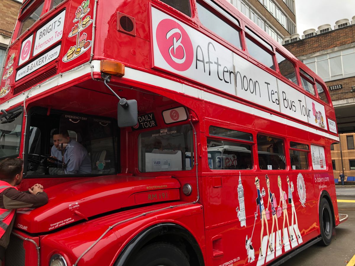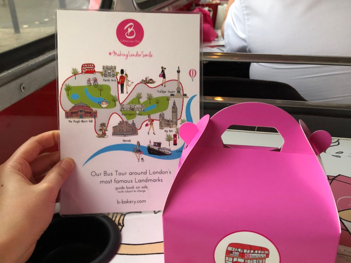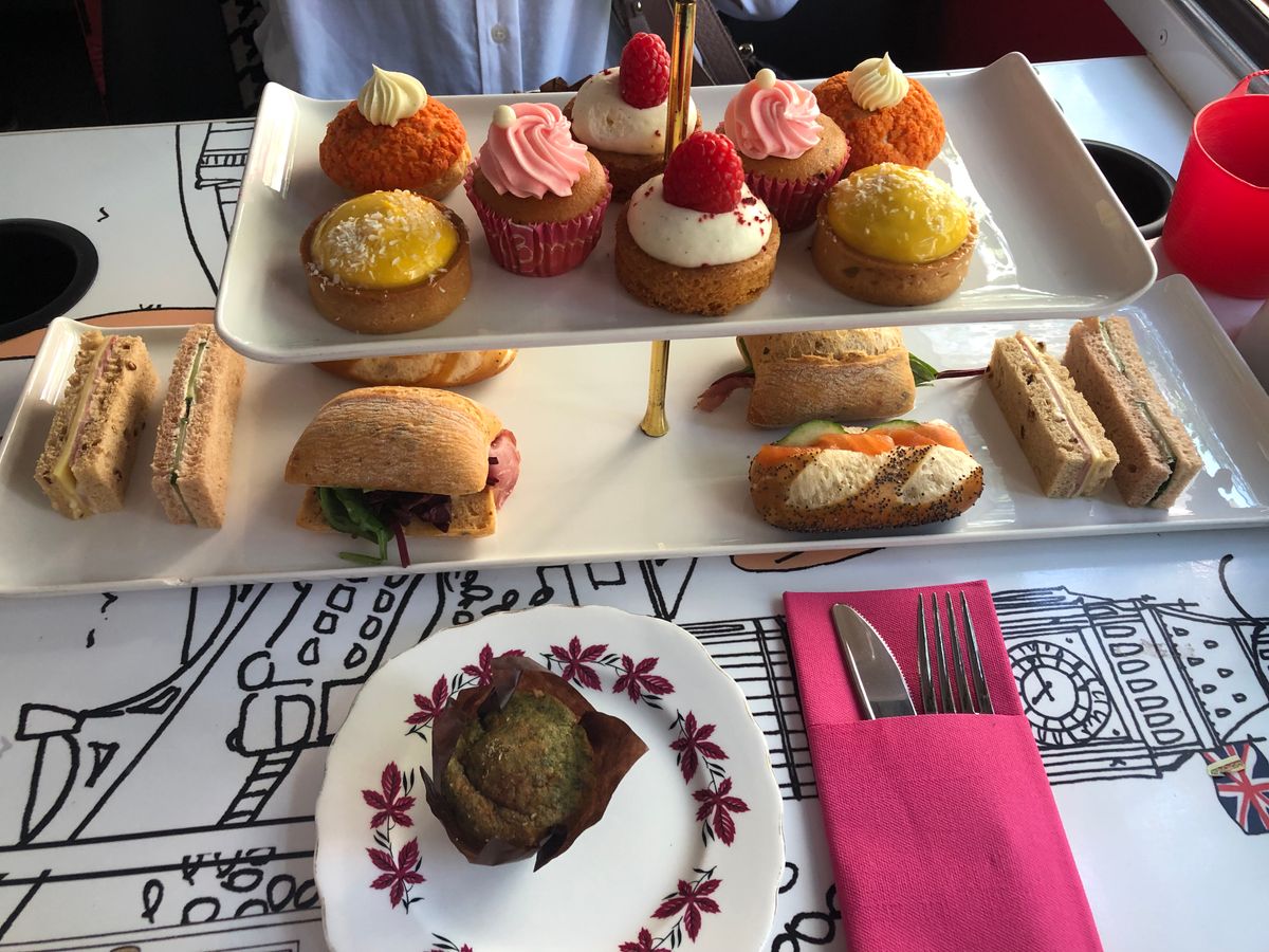 一階でしたが景色を楽しめました。参加者が多く二台のバスでした。受付はギリギリまで待つように言われるので時間を過ぎて全員の受付が終了する為不安になりますが、最初から座席は指定されています。英語は殆ど分かりませんでしたが通っている場所の説明が流れているようでした。ガイドさんが飲み物のお代わりを聞いてくれたり持ち帰り用の箱をくれたり親切でした。最後に気持ちをチップで払う用です。慣れていないので入れそびれましたがコインを缶に入れているようでした。サンドイッチもマフィンもスイーツもスコーンも美味しかったです。トイレがないので心配でしたがあっという間の90分でした。通りすがりの観光客にも注目されていたので走りながら宣伝にもなっていたようです。