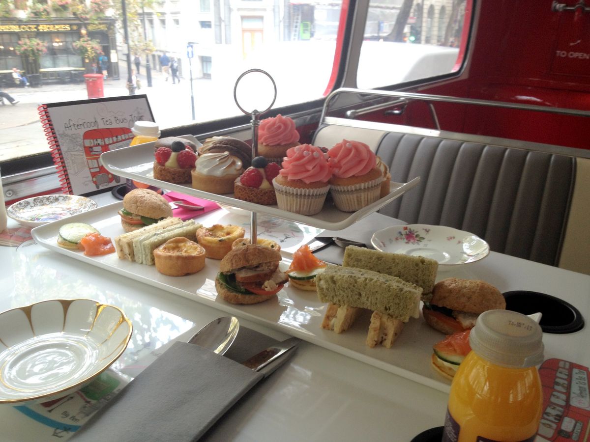 バスに乗ると綺麗に飾り付けられたアフタヌーンティーセットがあり、飲み物も大変豊富でした。見た目通りに味も大変良く、娘と二人大変感激しました。窓からの景色も桜が見えたりハイドパークが見えたりと充実した時間を過ごすことができました。出来るならあと30分乗っていたかったくらいです。最高!