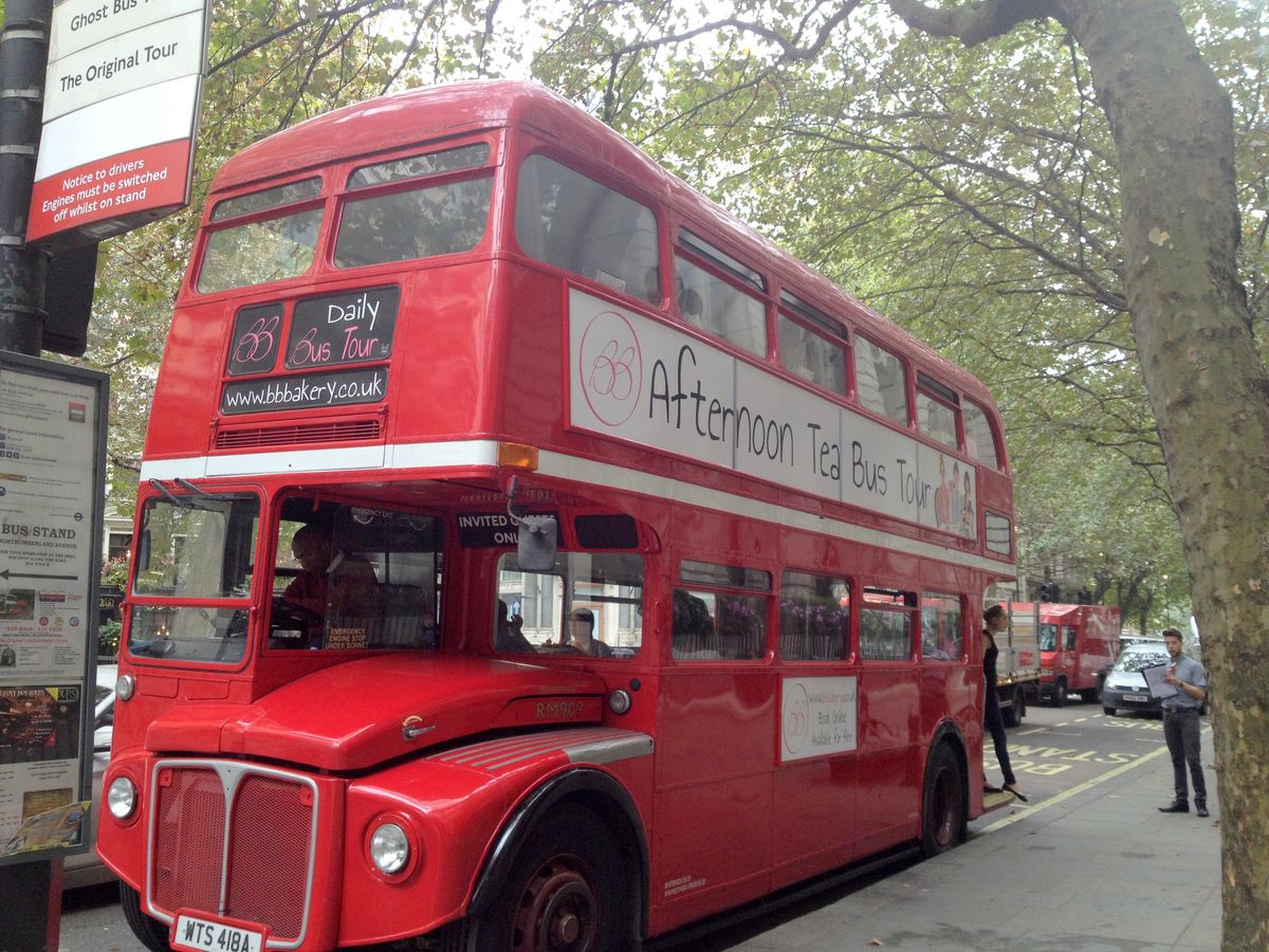 集合場所はトラファルガースクエアのすぐ近くで、赤い2階建てバスが停まっているのですぐにわかります。