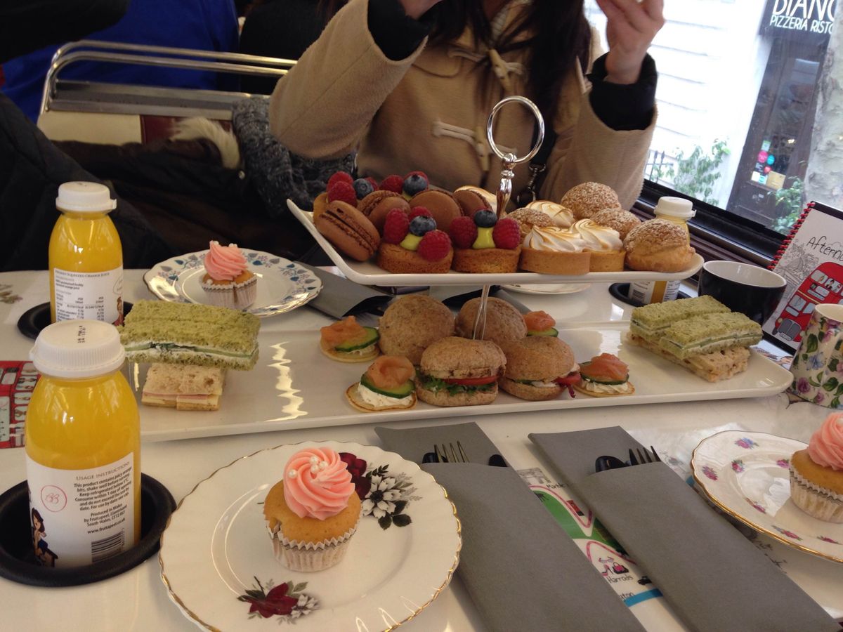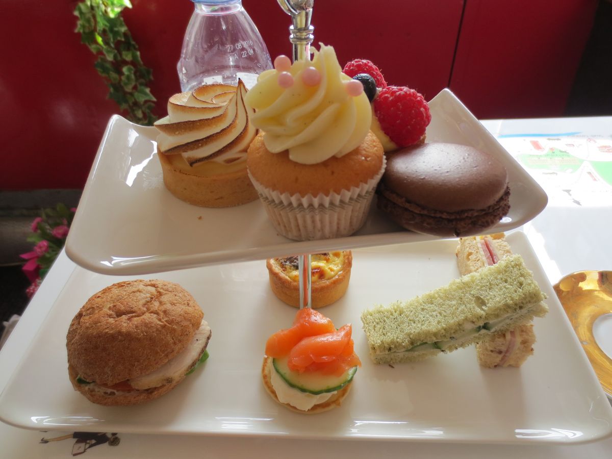 しばらくすると3段トレイがサーブされてきました!サンドイッチ、スイーツ類、スコーンです。どれもとっても美味しかったです。お昼少なめor抜きでも十分お腹いっぱいになります。
