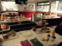 最終日の帰国前に入れたツアーでした。ダブルデッカーの中でアフタヌーンティー、どんな?と思いましたが、まず、乗ってビックリ!テープルコーディトがされていて。楽しい♬