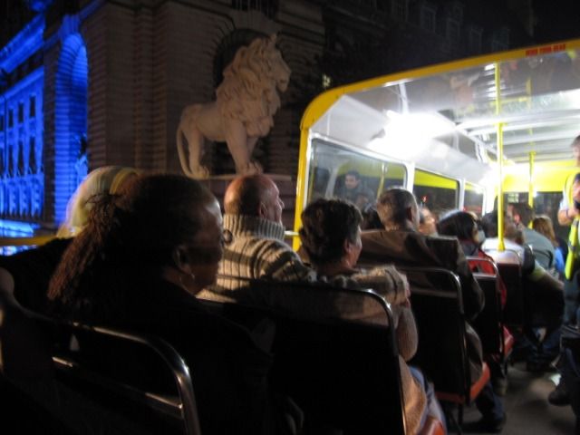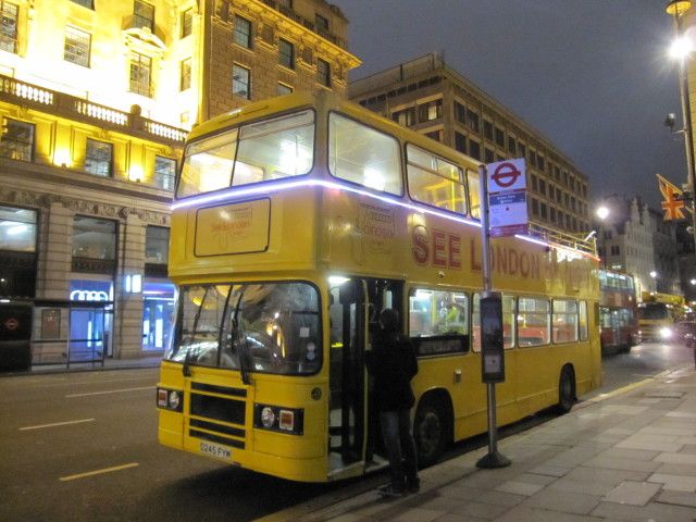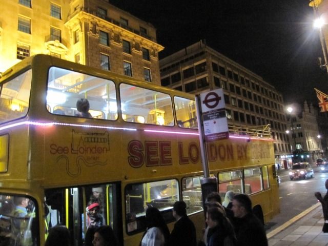 この時期寒いのだろうと防寒してバスの2F席から見渡せるのを期待していました。初回コースの人たちが降りてきてすぐ乗り込みました。バスの停車場所もThe Ritz Hotel沿いで分りやすかったです。夕方HISのツアーで周って(4日目のロンドン初日)いたときには雨も降っていて窓は雨粒だらけでしたが午後8時を過ぎて集合場所に向かう頃にはあがっていたのがなんともラッキーでした。毎日雨ばかりで外で写真を撮るためにすごい雨の中下車して芝生でひっくりかえって泥だらけになったり思いもしないことで残念続きでしたがきれいなライトアップされたロンドンの名所は一段と美しかったです。英語で案内のみでしたが、まあ夜景の観賞なのでOKでした。長く乗っているとやはり寒いので飛ばしてくれて意外と早く1時間10分位のツアーでした。