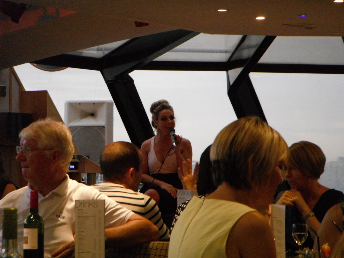 プロ歌手の歌を聴きながら、おいしい食事ができ、すばらしいロンドンの夜景を川から見ることもでき、とても良かったです。日本人は私達だけでしたが、逆に海外の来た雰囲気を楽しめ、最後にはのりの良い外人女性達がディスコのように踊っていて、とても楽しかったです。